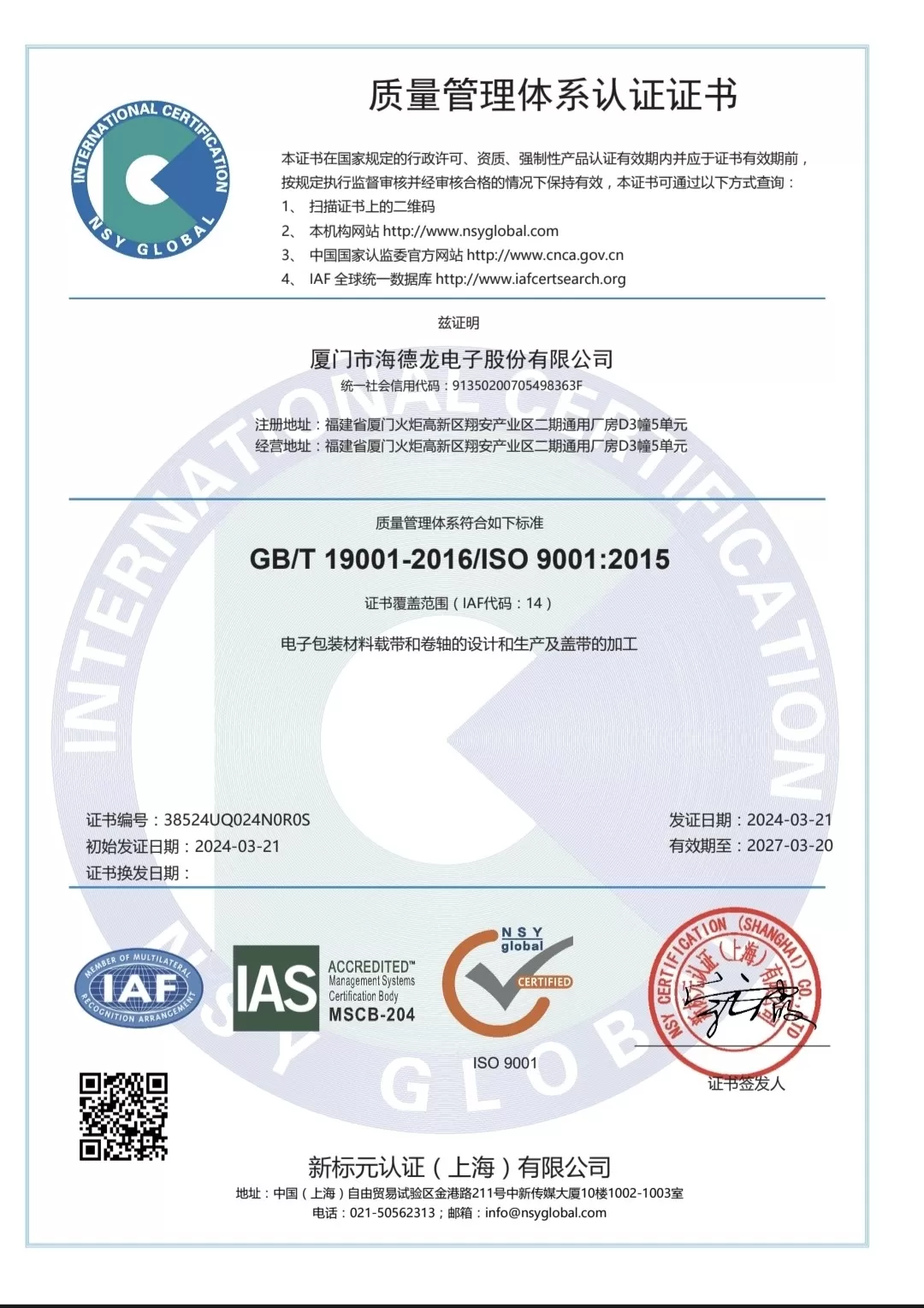 We hold seven major quality and compliance certifications, including EIA-481, IATF 16949, ISO 9001:2015, and RoHS compliance, providing customers with enhanced assurance in product safety, consistency, and regulatory compliance.